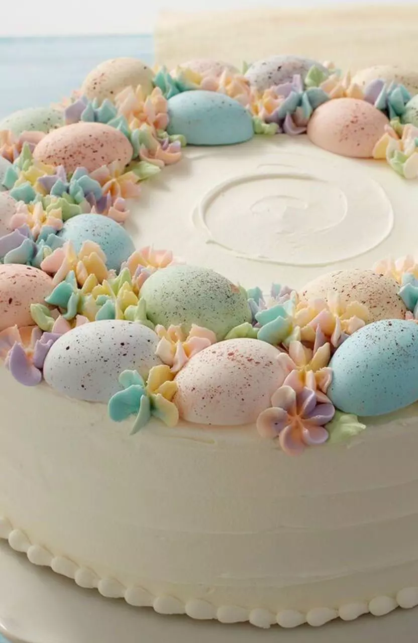 Layers of moist sponge cake with premium cream filling. Choose from silky vanilla, rich chocolate cream, or moist red velvet. Decorated with pastel-colored speckled fondant eggs and piped succulents in soft spring tones. Every bite is about the cake itself is tender, moist, and properly flavored.